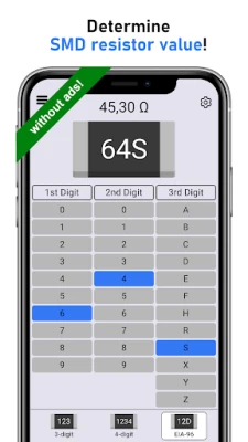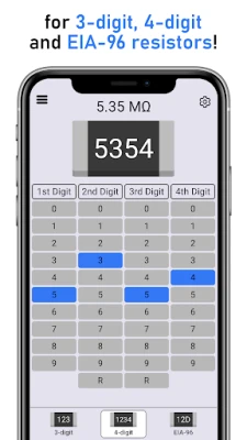 • Enter the code printed on your SMD resistor and instantly get the resistance value